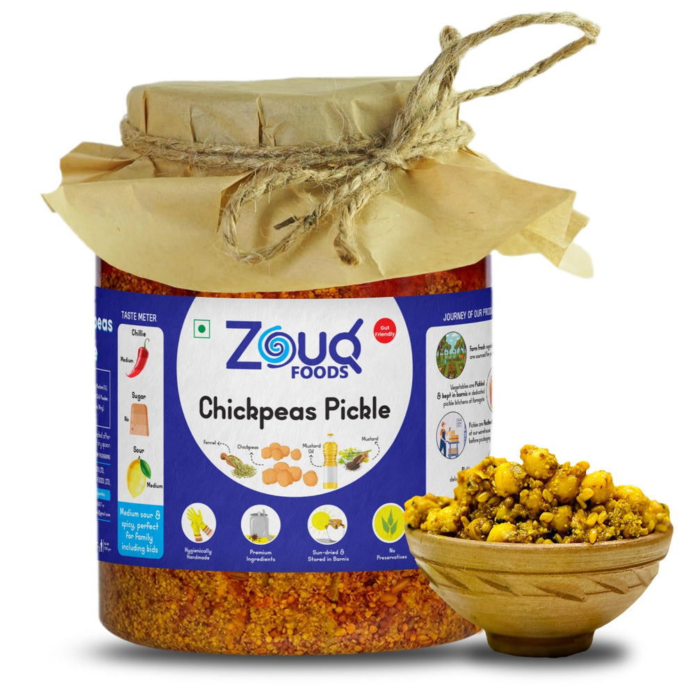 Discover the perfect balance of tangy, spicy, and mildly sour flavors with Zouq Foods' Chickpeas Pickle! Made with 100% natural ingredients and pickled in pure mustard oil, this pickle is sun-dried to enhance its rich, traditional taste. Now available in a 1200g eco-friendly plastic jar, ensuring both freshness and sustainability.