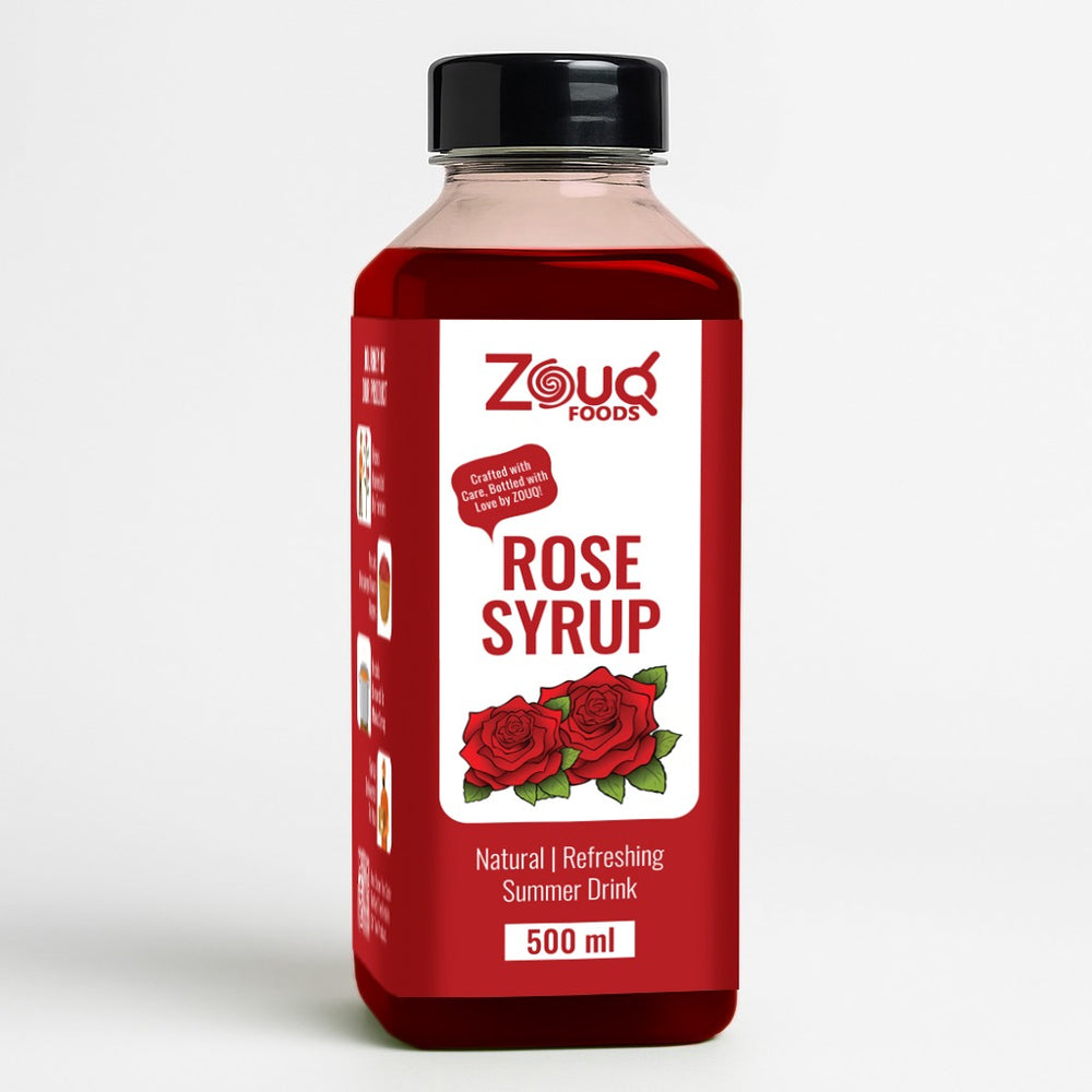 Add a splash of nature’s floral delight to your day with Zouq Rose Syrup — crafted and bottled with care and love.