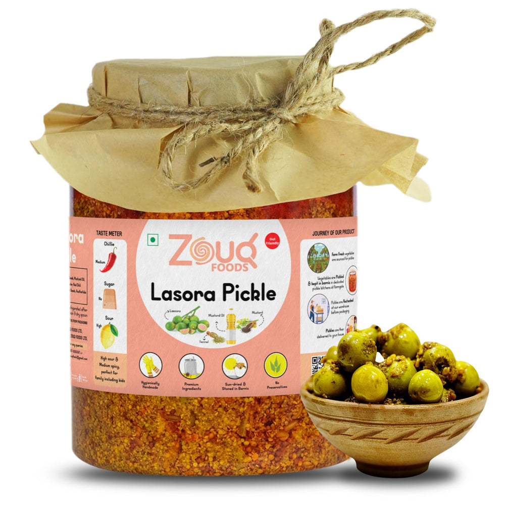 Enjoy the bold and authentic taste of traditional Lasora Pickle by Zouq Foods! Made with 100% natural ingredients and pickled in pure mustard oil, this delicious and tangy pickle is crafted using traditional methods for the perfect homemade flavor. Now available in a 1200g eco-friendly plastic jar, ensuring freshness and sustainability.
