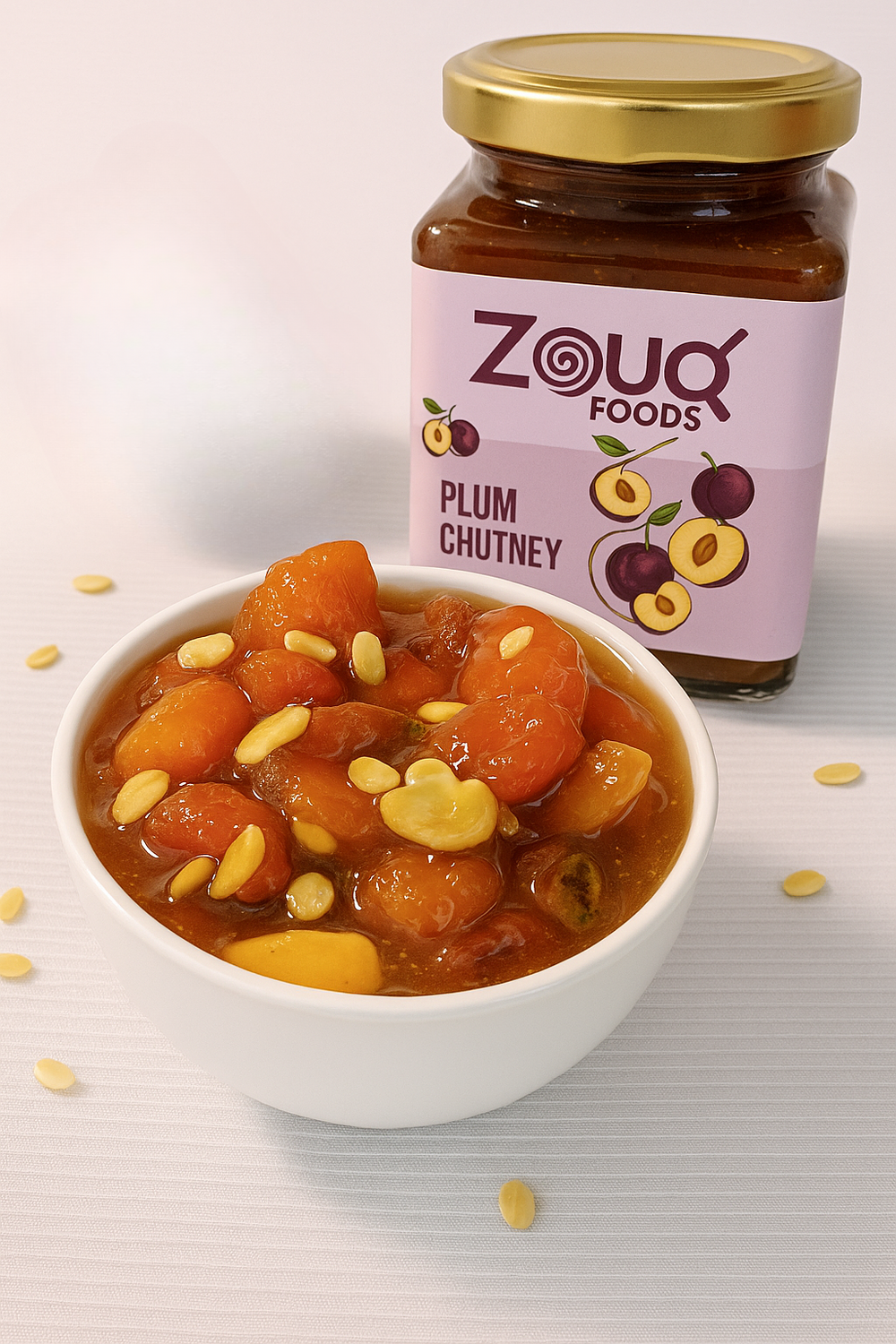 Indulge in the rich, sweet goodness of Zouq Plum Chutney, crafted from sun-ripened plums and generously packed with premium dry fruits and crunchy nuts. With its thick, luscious texture and naturally sweet flavor, it’s more than just a chutney — it’s a treat in every spoon.